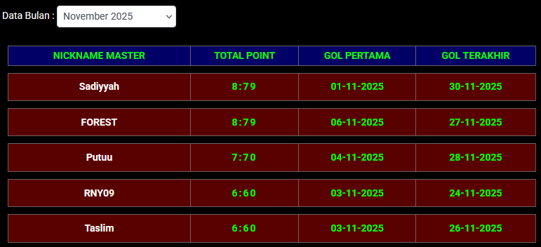 - Penerima Hadiah: Nickname peringkat 1-5 di Tabel Edisi Bulanan (berdasarkan poin tertinggi/jumlah gol dari awal hingga akhir bulan).